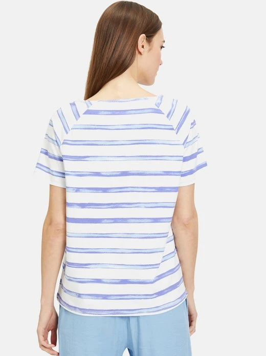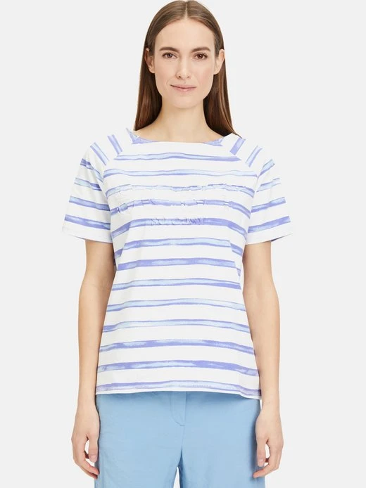 Dieser angesagte Statement Look wird Sie begeistern! Das Casual-Shirt von Betty Barclay SO COSY ist ein lässiges und bequemes Kleidungsstück für den Freizeit-Look. Es hat einen überschnittener Arm und Raglanärmel, die für eine bequeme Passform sorgen. Der U-Boot Ausschnitt gibt dem Shirt einen modernen Touch und das Streifenmuster verleiht ihm eine zeitlose Note. Die Prägung auf dem Shirt ist die besondere Note, die es von anderen Ringelshirts abhebt. Es hat eine leicht taillierte Passform und ist perfekt für den entspannten und dennoch stilvollen Look. Das Kleidungsstück bringt die weiblichen Vorzüge zum Vorschein und setzt Sie perfekt in Szene.