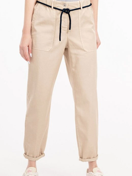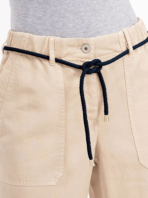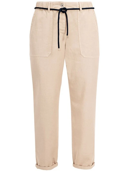 Luftige Sommerhose BELINA von RECOVER PANTS aus einem elastischen Lyocell-Baumwollgemisch. Die lockere Passform garantiert zusätzlich zu dem elastischen Gewebe viel Bewegungsfreiheit. Das Komfortbund mit eingearbeitetem Gummizug unterstreicht dies. Ein schönes Detail sind die aufgesetzten Taschen mit eingearbeiteter Leiste sowie der fesche Kordelgürtel. Der aufgekrempelte Saum gibt dem Style zusätzlich einen lässigen Touch. Verschluss mit Knopf und Reißverschluss.