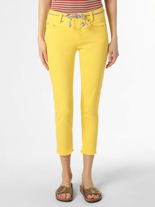 Bereichert die Casual-Garderobe mit erfrischender Nuance: die 5-Pocket-Hose Florida von Anna Montana mit verspieltem Kordelgürtel.