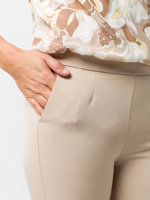 Diese FRANK WALDER Schlupfhose für Damen überzeugt durch einen elastischen Bund mit eingearbeitetem Gummi für zusätzlichen Tragekomfort. Zudem gibt es seitliche Eingriffstaschen mit Zierstepp für zusätzlichen Halt. Die Hose ist in verschiedenen Uni-Farbvarianten – ink, khaki, sand und schwarz – in Größen von 36-52 (solange vorrätig) erhältlich. Das Material ist eine pflegeleichte Stretch-Qualität. Der Schnitt ist Regular-fit und schafft, dank seiner schmalen Silhouette, Slim Legs. Diese bequeme Schlupfhose in aktuelle Länge hat einen schmalen Beinsaum als Detail. Dank des zeitlosen Designs ist diese Damenhose ein stylischer Allrounder, der sich leicht kombinieren lässt.