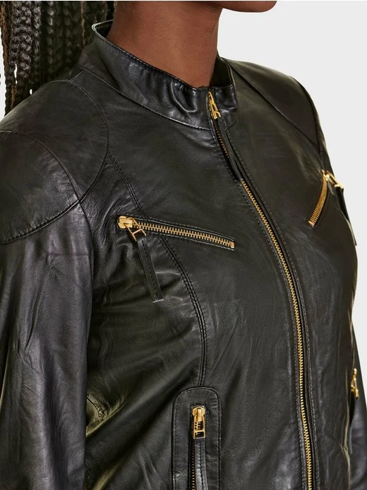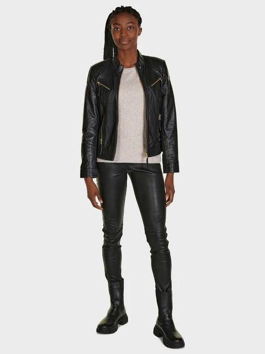 Kurze Bikerjacke aus Lamm Leder mit Reißverschluss. Passt zu jeder Gelegenhiet.