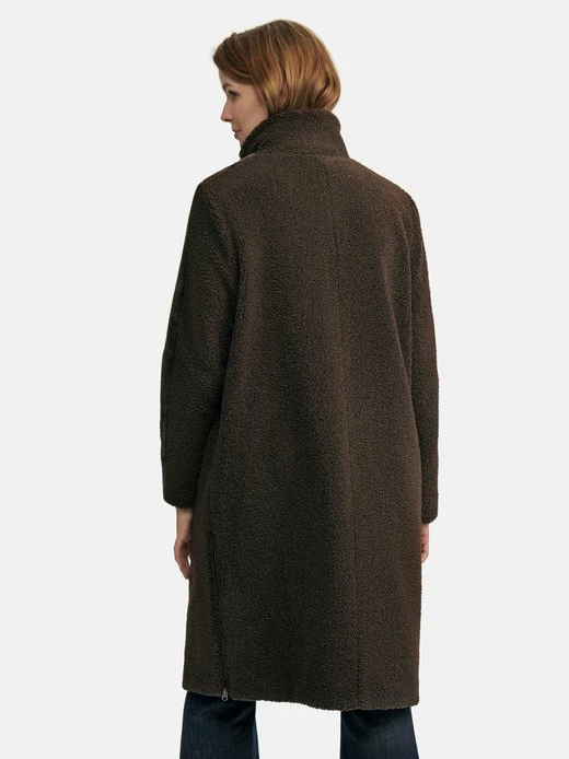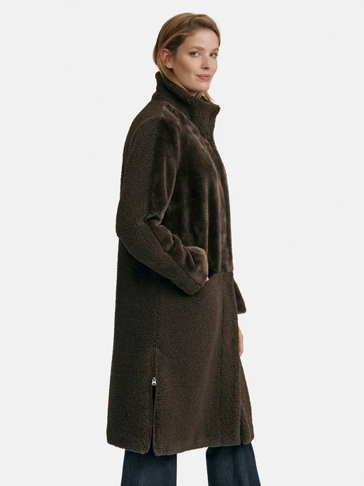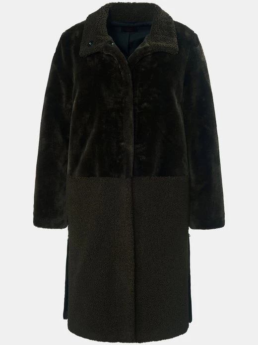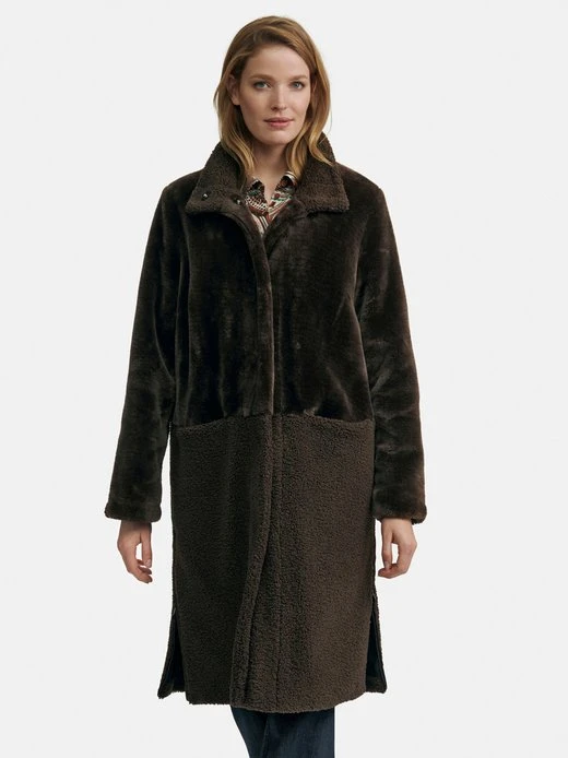 Mantel von EMILIA LAY für kältetaugliche Trend-Outfits! Eine Kombination von mattem und fein schimmerndem Fake Fur verleiht ihm den angesagten Look. Gerader Style mit Stehkragen, Druckknopfleiste, 2 Taschen und hohen Seitenschlitzen mit Reißverschluss zum Variieren. Die Länge in Größe 42 ca. 100 cm. Dieser Mantel ist maschinenwaschbar.