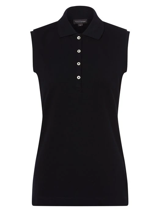 Greift auf klassische Design-Attribute wie Kragen, Knopfleiste und Piqué-Struktur zurück, verzichtet aber für einen erfrischenden Look auf die Ärmel: das Polotop von Franco Callegari.