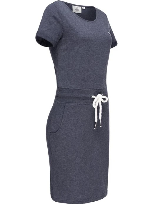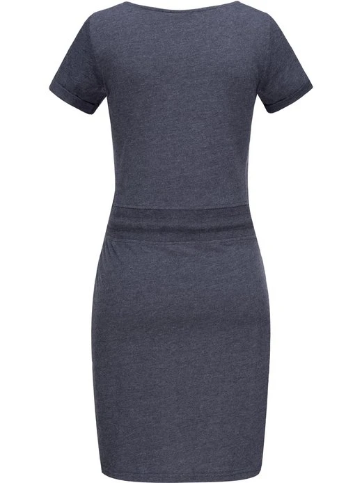 Stylisches Kurzarm-Jerseykleid von Peak Time, je nach Variante mit verspieltem Printmuster oder uni-farben, mit Rundhalsausschnitt und modischer dicker Tunnelzug-Kordel an der Taille.
