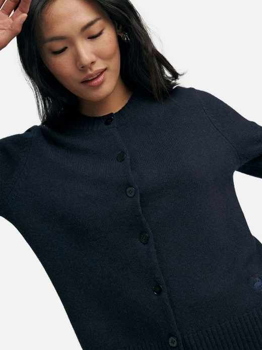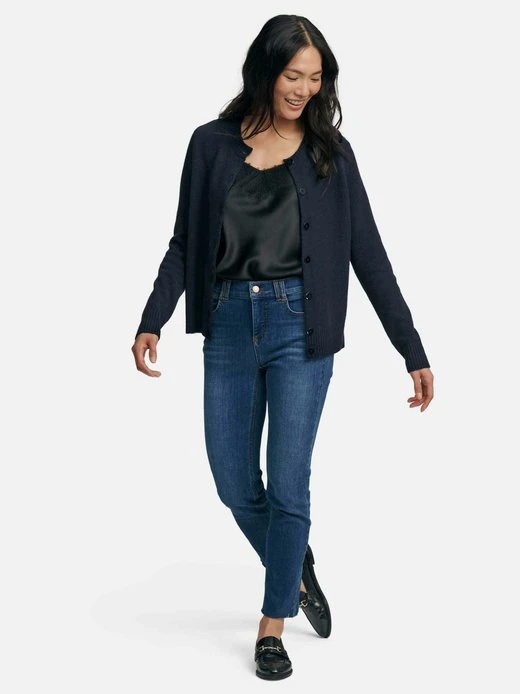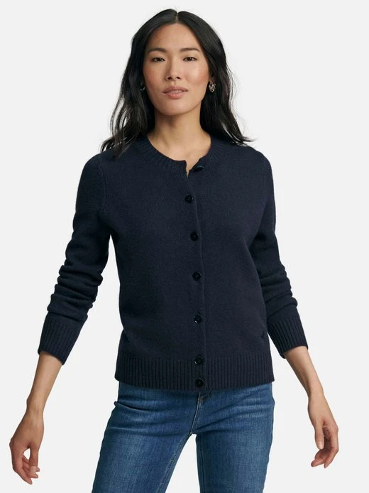 Strickjacke von INCLUDE mit 1/1-Arm, Rundhals-Ausschnitt, gestickter Kaschmirziege und edlen Ton-in-Ton-Knöpfen. Aus 4-fädigem Premium-Kaschmir, die Luxusklasse der Kaschmir-Mode! Um auch unserer Verpflichtung zu Umweltschutz, Tierwohl und Einhaltung sozialer Standards nachzukommen, verwenden wir Kaschmir-Wolle, die nach dem international gültigen Tierwohlsiegel THE GOOD CASHMERE STANDARD® durch die AbTF (Aid by Trade Foundation) zertifiziert ist. 100% Kaschmir. Länge ca. 58 cm. Diese Strickjacke ist maschinenwaschbar.