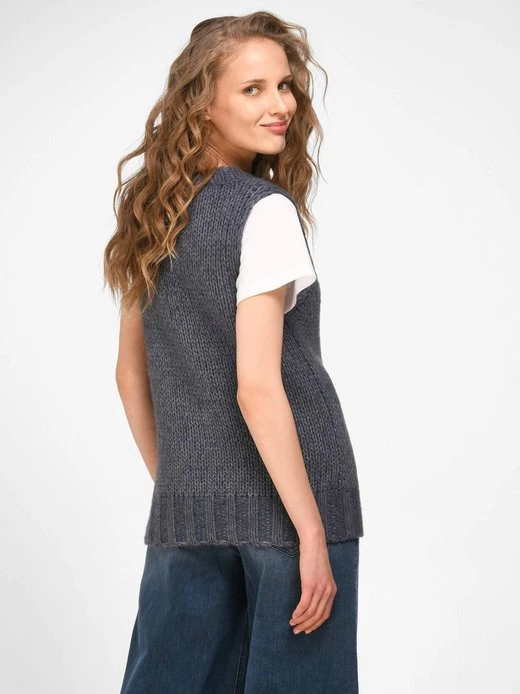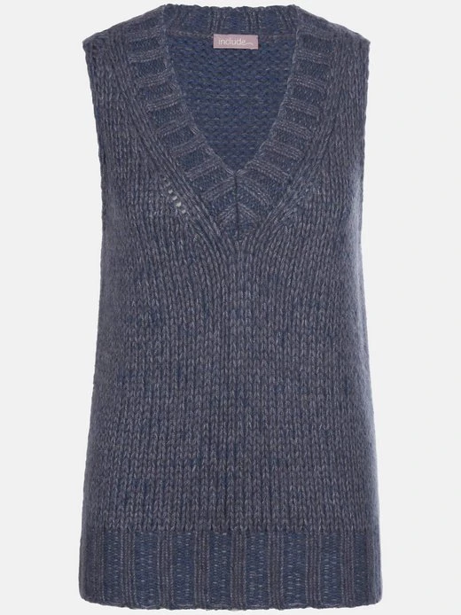 Pullunder von INCLUDE – das aktuelle Must-have für coole Outfits mit tiefem V-Ausschnitt und Rippenabschlüssen. Mode-Maschen in neuen, legeren Styles – voluminös und leicht gestrickt in einem flauschigen Material-Mix aus der Schatzkiste der Natur. 63% Wolle, 30% Kaschmir, 7% Seide. Länge ca. 58 cm. Für diesen Pullunder empfehlen wir Handwäsche.