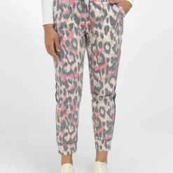 Knöchellange Sweathose von EMILIA LAY mit farblich neu interpretiertem Leo-Druck, durch den jede Hose zum Unikat wird. Bequem und trendig mit Rundum-Gummibund, Tunnelzug und Kordel, 2 schrägen Eingrifftaschen vorn, einem applizierten Band mit Wording auf der Seitennaht sowie Saumbündchen. Schrittlänge in Größe 42 ca. 71 cm. Diese Sweathose ist maschinenwaschbar.