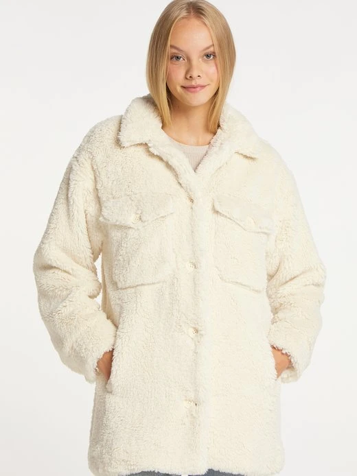 Kuschelig geht auch ohne tierische Produkte: Mit dieser Jacke von taddy kannst Du den Beweis jederzeit einfach anziehen. Der super-softe Faux Fur macht Schmuselaune, die großen Knöpfe auch an den Manschetten, und die aufgesetzten Brusttaschen machen Deinen Shearling-Look perfekt. Ein bisschen Glamour darf trotzdem sein. Den bringt Dir das glänzende Satin-Innenfutter. Diese Jacke ist nicht nur Best Friend zu Tieren, sondern auch zu Deinen Lieblingsboots.