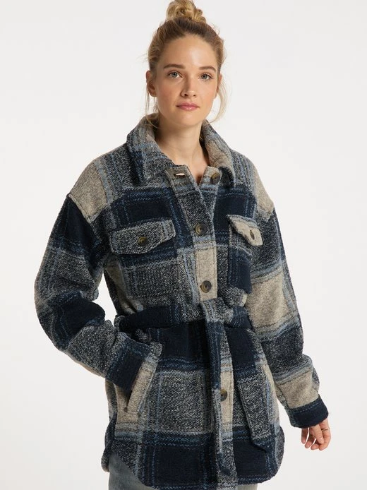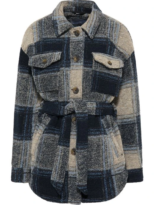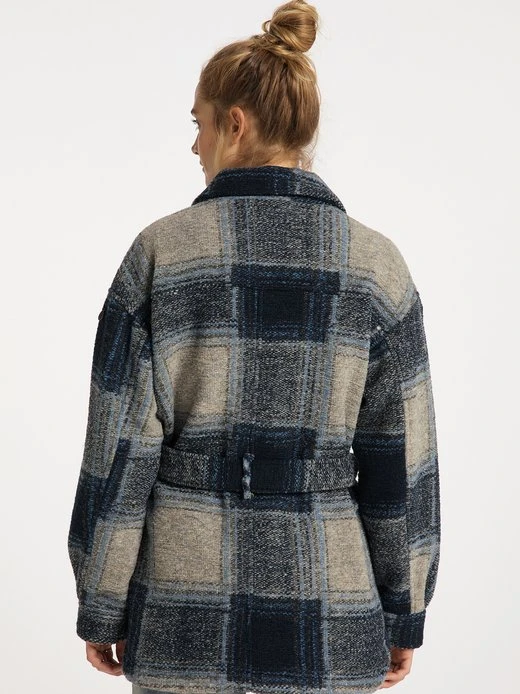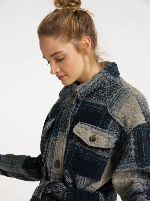 Herbstliche Vintage-Optik mit Holzfäller-Charme! In diesem Stil präsentiert sich die Übergangsjacke von DreiMaster Vintage. Ihr klassisches Karomuster trifft auf eine typische Schnittführung, die sich im weichen Klappkragen sowie in der angedeuteten Oversized-Form und dem Bindegürtel wieder findet. Besonderes Retro-Flair verleihen die aufgesetzten Brusttaschen, vor allem aber die großen Knöpfe in Hornoptik mit Logo-Prägung. Der leicht taillierte Schnitt und die gerundeten Säume sorgen für eine feminine Note. Ein verdeckter Druckknopf schließt die seitlichen Eingrifftaschen, ein weiterer, dekorativer Druckknopf sichert den Inhalt der Innentasche.