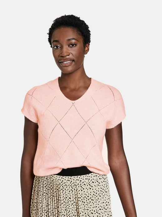 Ein Favourite in Ihrem Kleiderschrank: Dieser bequeme Kurzarmpullover verbindet Style und Komfort. Der flauschige Qualitätsmix mit Wollanteil und Stretchkomfort punktet mit einem ausgezeichneten Tragegefühl. Durch die feinen Ajour-Details wird Ihr neues Lieblingsstück zur perfekten Leinwand für ansprechende Kombinationen.