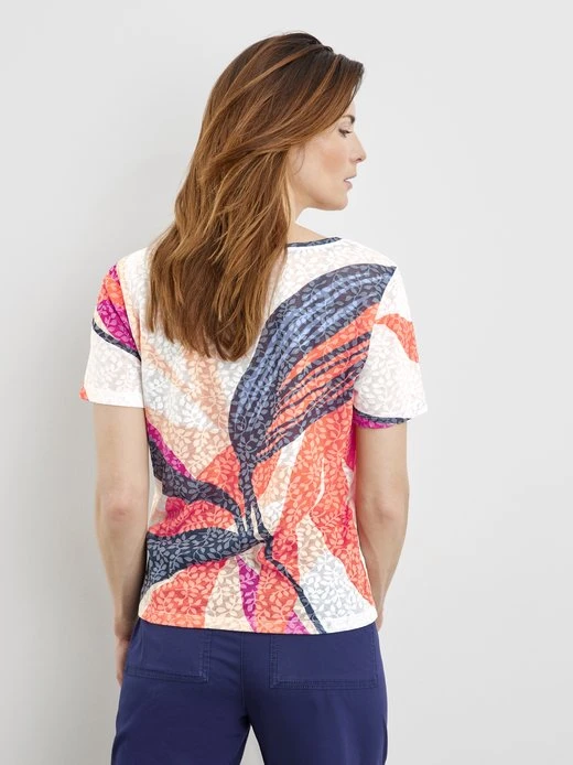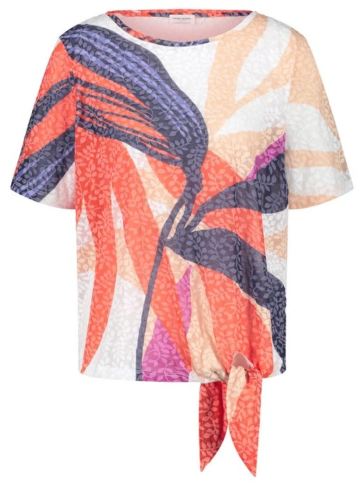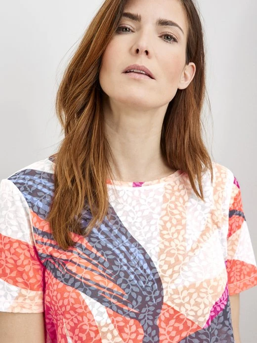 Alltagstauglich und dennoch besonders: Bei diesem figurumspielenden Kurzarmshirt fällt vor allem das Binde-Detail am Saum ins Auge. Durch unterschiedliche Bindemöglichkeiten lassen Sie das Shirt jedes Mal anders erscheinen. Das softe Material und der lockere Schnitt tragen zu einem angenehmen Komfort bei. Der Print im Print erzeugt einen tollen Effekt, bei dem man gerne wieder hinschaut.