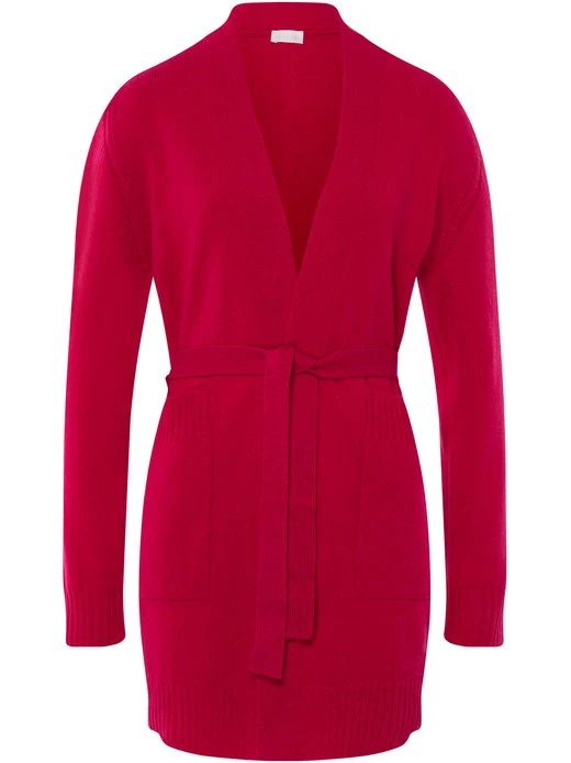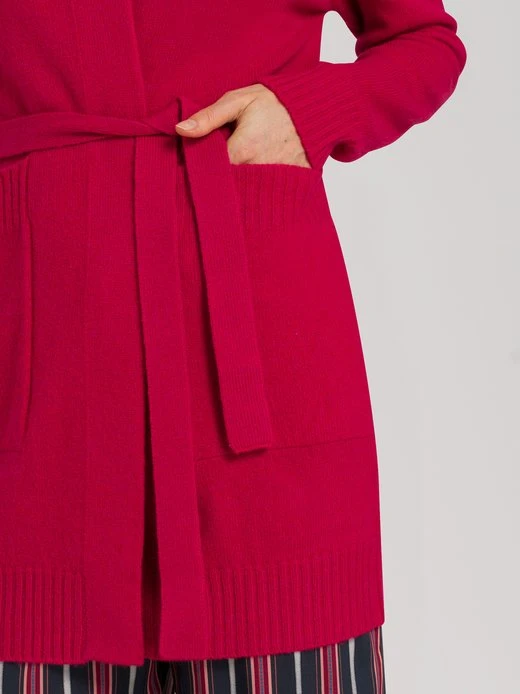 Dieser HANRO Cardigan aus der beliebten Serie Knits garantiert gemütliche Stunden zum Wohlfühlen. Er ist aus hochwertiger Merinowolle vom Merinoschaf und hält natürlich warm. Der dazugehörige Gürtel sorgt für eine perfekte Passform, praktische Taschen runden das Design gekonnt ab. Dank vielfältiger Kombinationsmöglichkeiten ist die Strickjacke perfekt für jeden Anlass.