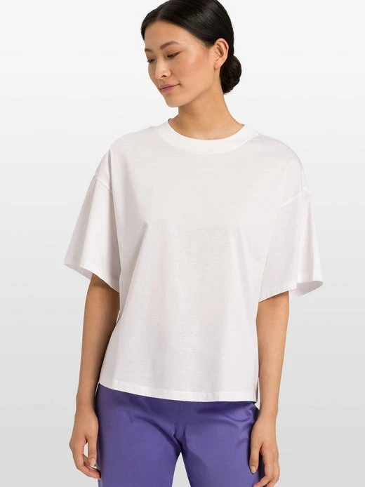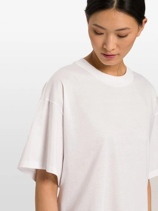 Dieses HANRO Oberteil aus der Serie Natural Shirt ist ein echtes Fashion Item. Der Schnitt in „Boxy Shape“ ist sehr modern und perfekt zu kombinieren. Ob zu Jeans, Röcken oder Loungehosen, damit sind sportliche und ebenso elegante Looks möglich. Die superweiche Bio-Baumwolle liegt dabei jederzeit angenehm leicht auf der Haut – so fühlt sich Luxus an.