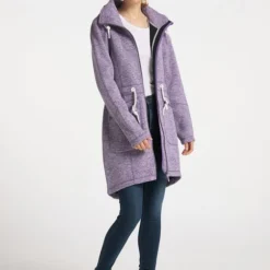 Kühles und nieseliges Grau hält Sie nicht davon ab, raus zu gehen? Kann es auch gar nicht, denn mit diesem Strickfleecemantel von ICEBOUND hat das Herbstwetter keine Chance. Angenehm feines, dünnes Jersey-Futter unter der dicht gewebten Strickoptik wärmt und sorgt für vollen Tragekomfort bei jeder Aktivität. Hochschließender Kragen mit Kinnschutz, durch Tunnelzug regulierbare Kapuze und Taille halten die Wärme ebenfalls immer bei Ihnen. Die, mit gerundetem Saum, hinten etwas längere Form sorgt auch auf dem Fahrrad immer für einen geschützten Rücken. Endlich kommt die Sonne? Die integrierte Kapuze kann dann ganz einfach im Kragen, unter einem kräftigen Reißverschluss, verborgen werden, bis es der Herbst noch einmal versucht. Sportive wie wertige Details, wie sie zu ICEBOUND gehören, ergänzen auch hier wieder das Design. Die kontrastierenden Kordel der Tunnelzüge lassen sich mit ICEBOUND-Silikonschiebern fixieren, Label-Reißverschlussgriffe und Ton-in-Ton-Stickerei unterstützen den sportlich-aktiven Outdoor-Look.