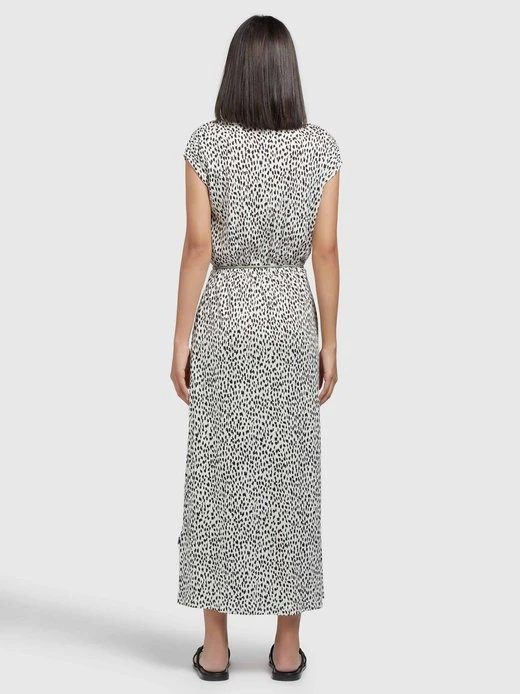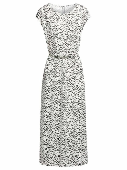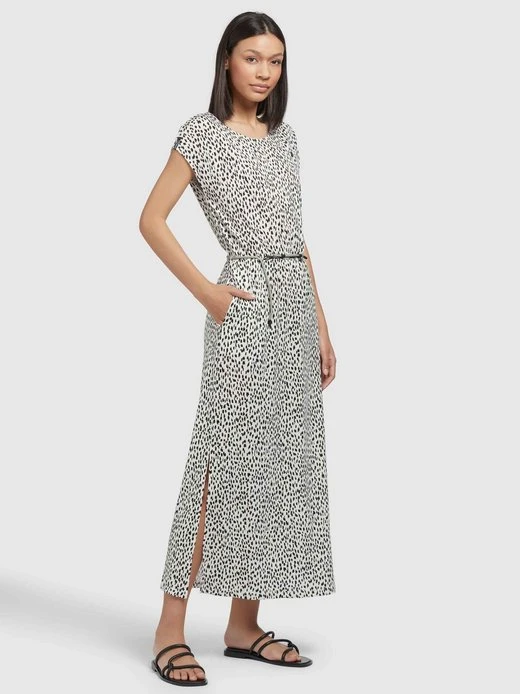 Das wadenlange khujo Jerseykleid MIRNA GEPARD AOP ist mit einem Stretch-Einsatz an der Taille und einem abnehmbaren Gürtel bestehend aus einer Kordel mit Verschluss ausgestattet. Ein Rundhalsausschnitt, Eingrifftaschen und überschnittene Schultern mit Flügelärmeln, sowie ein einseitiger Gehschlitz runden das Design bei diesem, im Loose Fit geschnittenem Sommerkleid im Geparden-Look, gelungen ab.