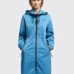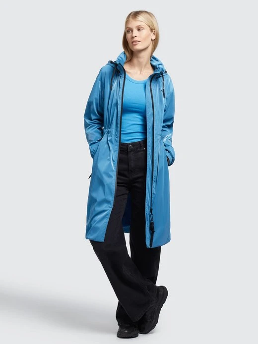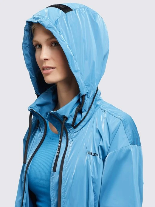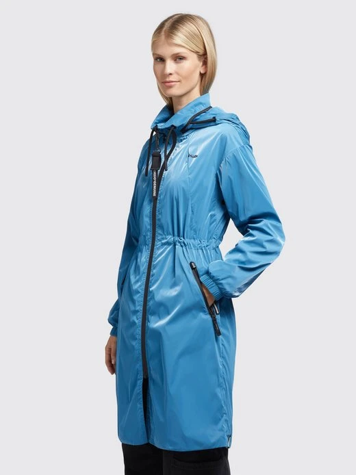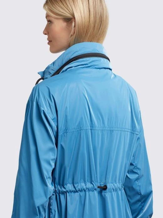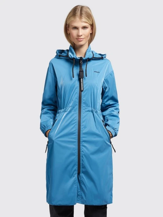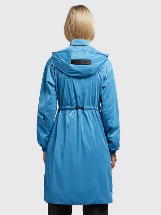 Der leichte khujo Mantel MARTHE ist ein sommerlicher Kurzmantel mit einem knielangen Schnitt und einer glänzenden Optik. Dank einer im Stehkragen verstaubaren Kapuze mit Kordelzug, Reißverschlüssen mit wasserabweisender Beschichtung, Belüftungsösen unter den Armen, elastischen Bündchen an den Ärmeln und einem Kordelzug an der Taille, bietet die Sommerjacke viele nützliche Features. Kleinigkeiten lassen sich bei diesem einfarbigen Parka in den Reißverschlusstaschen sicher verstauen.