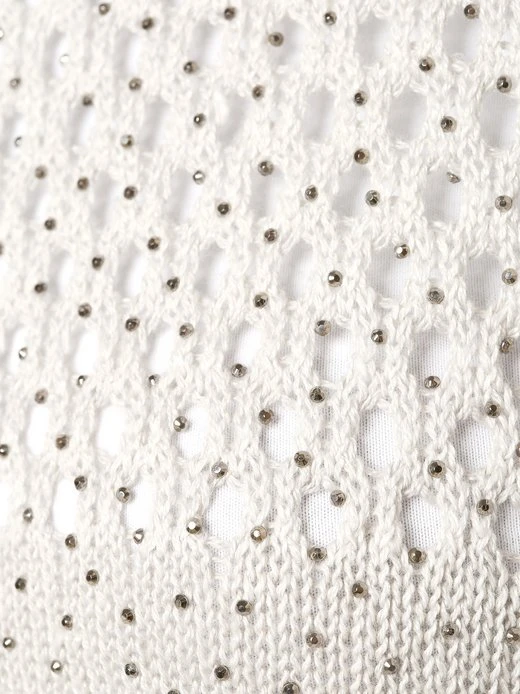 Eine Qualität aus hochwertigem Leinen, ein feines Nieten-Dekor und eine raffinierte Lochstruktur definieren den modischen Look des Strickshirts von Monari.