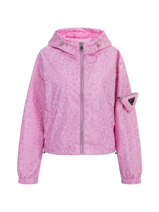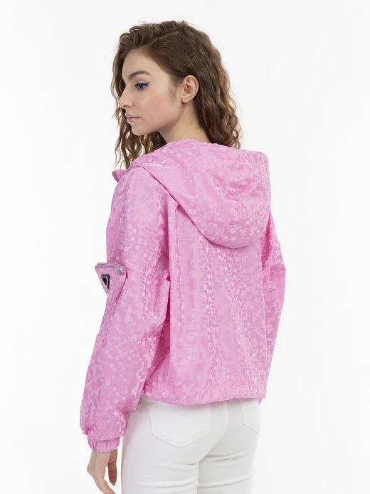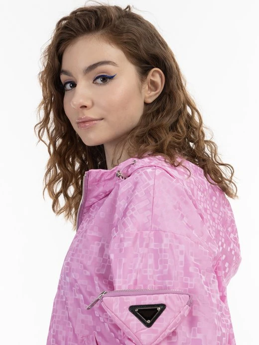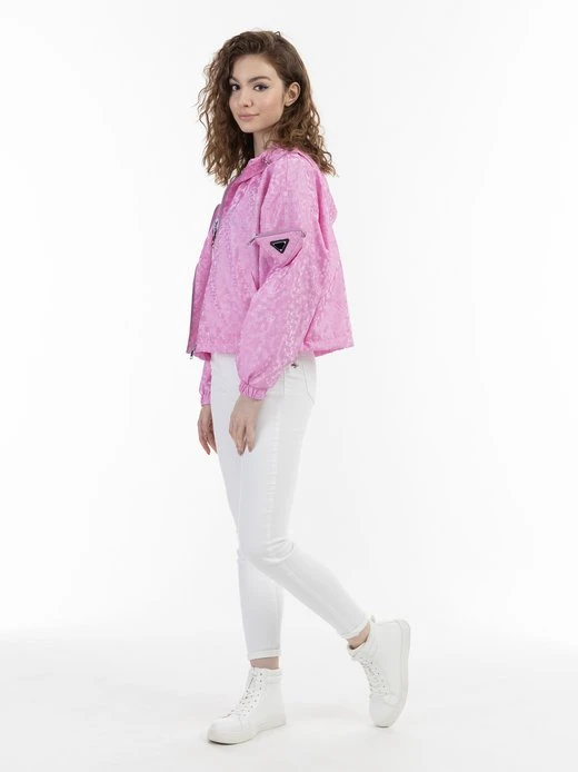 Mit dieser stylishen Übergangsjacke von myMo kann das Wetter ruhig mal grau sein, denn die trendigen Farben leuchten jede Tristesse einfach weg. Das legere Design ist aus einem glänzenden Material gefertigt und mit einem changierenden Grafikprint veredelt. Eine dreieckige Ärmeltasche mit Plakette zeigt modisches Flair und verwahrt sicher einen Schlüssel, Kleingeld oder einen Lippenstift, während die elastischen Bündchen sowie eine praktische Kapuze für einen gelungenen Abschluss sorgen.