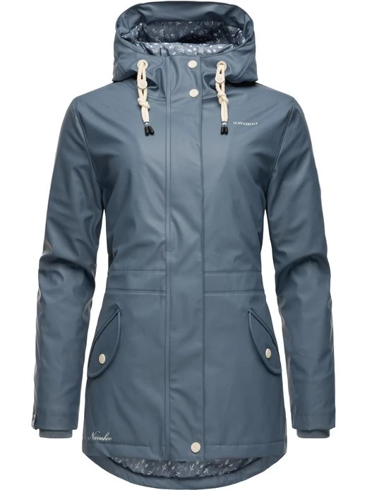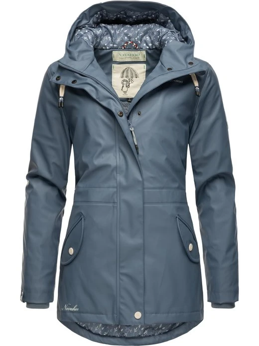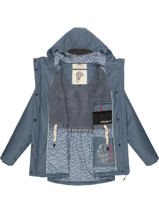 Wasserdichte, gefütterte Damen Regenjacke von Navahoo mit großer Kapuze und figurumschmeichelndem Schnitt – ideal für nass-kaltes Wetter in der Übergangszeit.