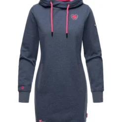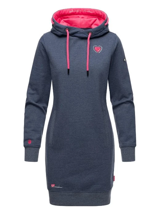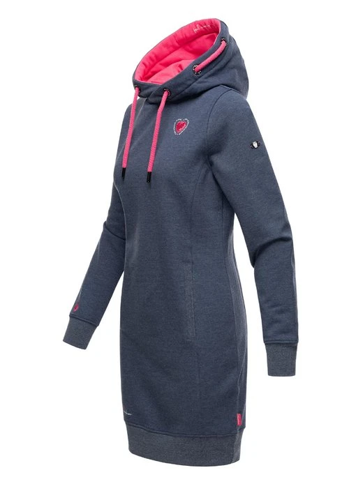 Kuschelig weiches Langarm Winterkleid mit kontrastfarbenen Details und Kapuze in Premium Qualität von Navahoo.