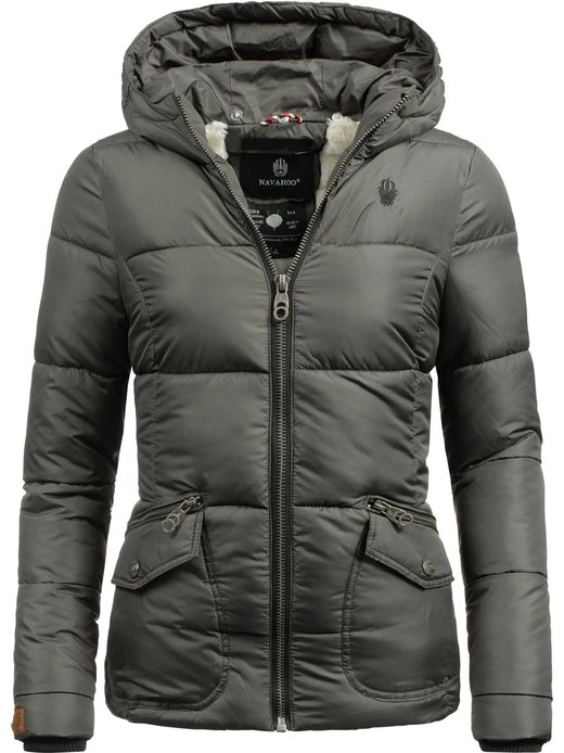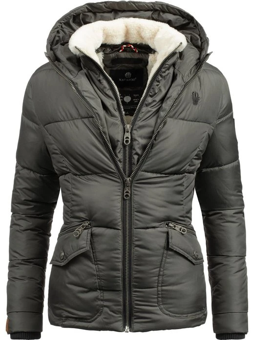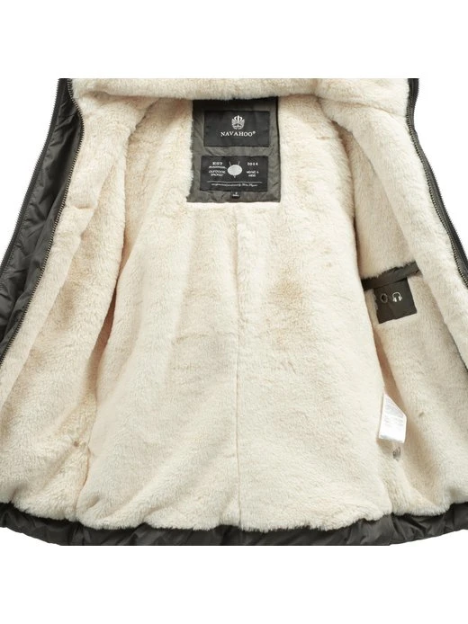 Modische Damen Steppjacke von Navahoo mit großer Kapuze, Doppel-Zipper und weichem Teddyfell Innenfutter – perfekt für den Winter!