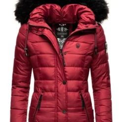 - Modische Damen Winter-Steppjacke mit großer Kunstfellkapuze