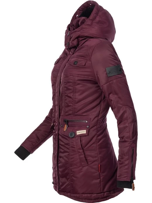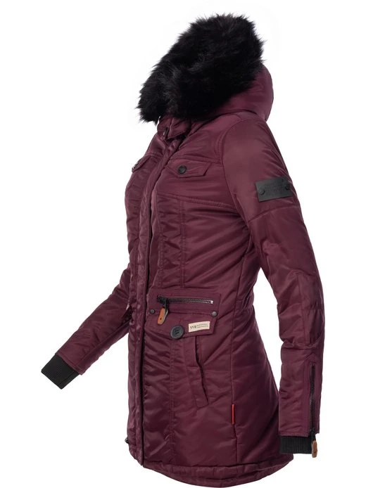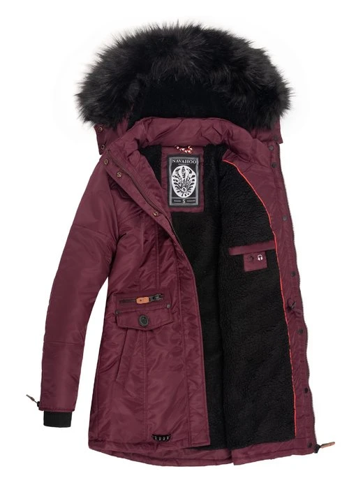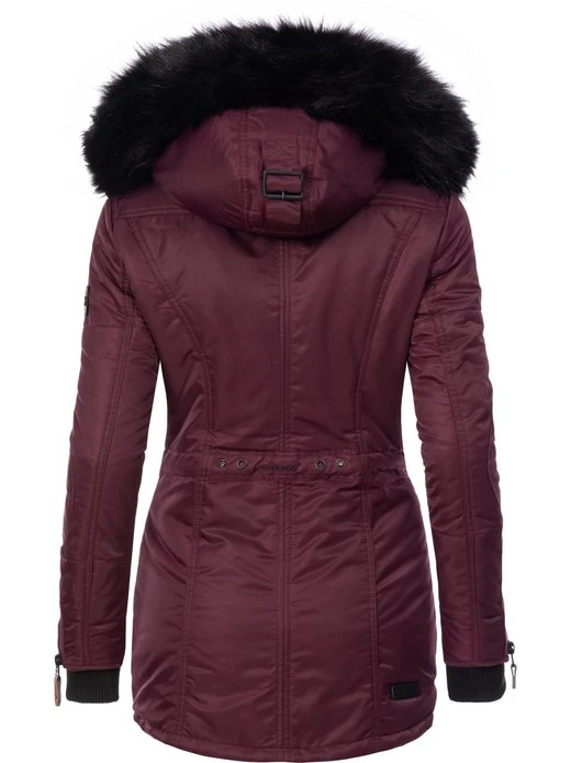 Warm gefütterte Damen Winterjacke mit vielen aufwendigen Details, weicher Wattierung und warmer, abnehmbarer Kunstpelz Kapuze.