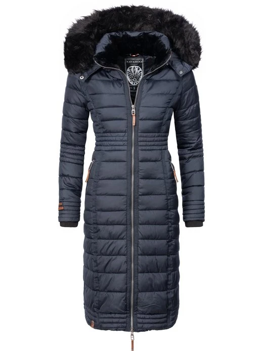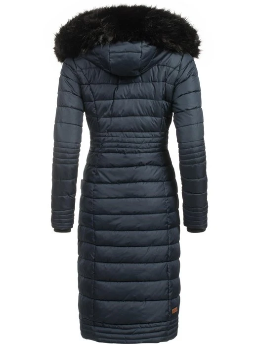 Stylischer Damen Wintermantel mit modischer Steppung und kontrastfarbenem Kunstpelz an der Kapuze (abnehmbar).