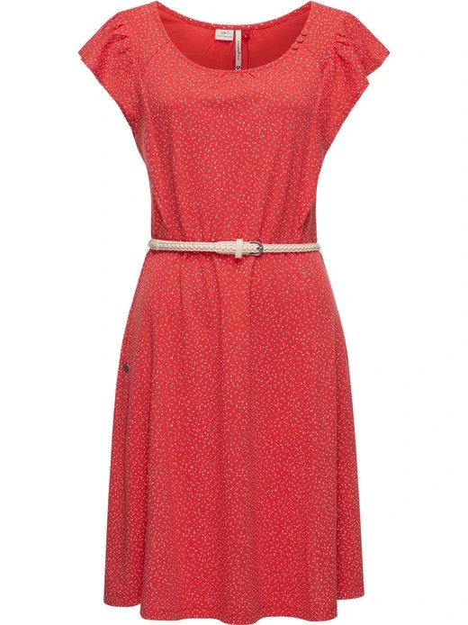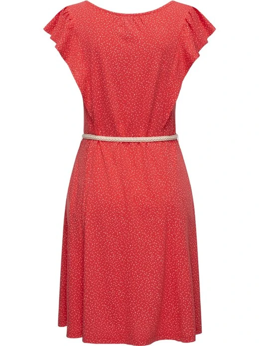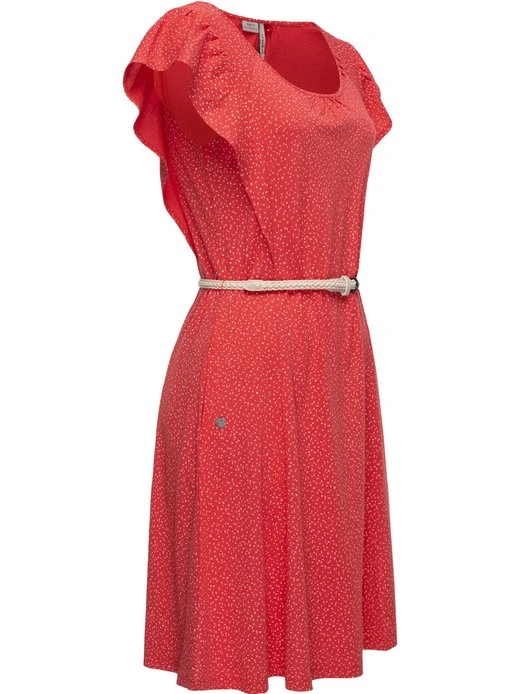Stylisches Kurzarm-Kleid mit Rundhalsausschnitt, süßem Wellensaum an den Ärmeln und hochwertigem Bindegürtel an der Taille vom urbanen Trendlabel Ragwear.