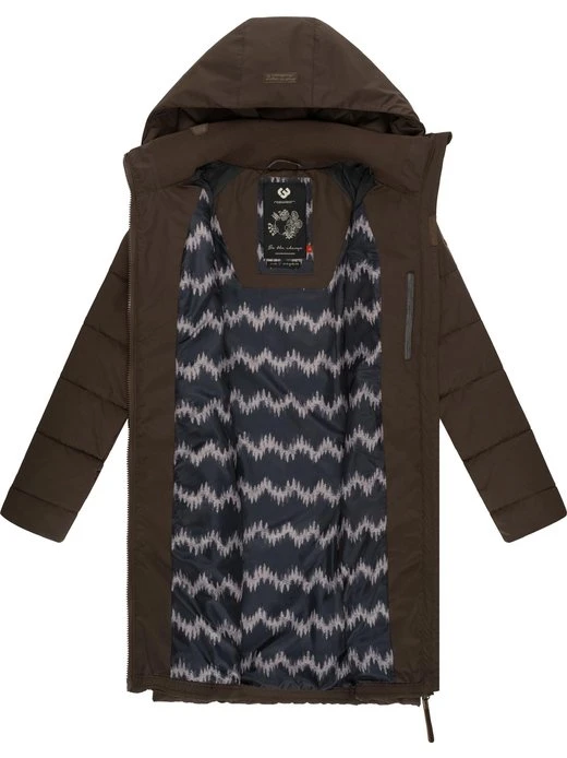Warmer Wintermantel mit großer gefütterter Kapuze und hohem Kragen vom angesagten Streetwear Label Ragwear.