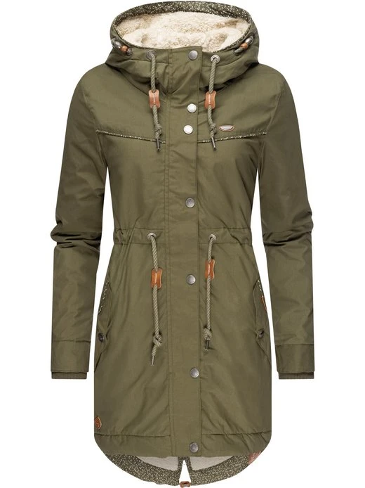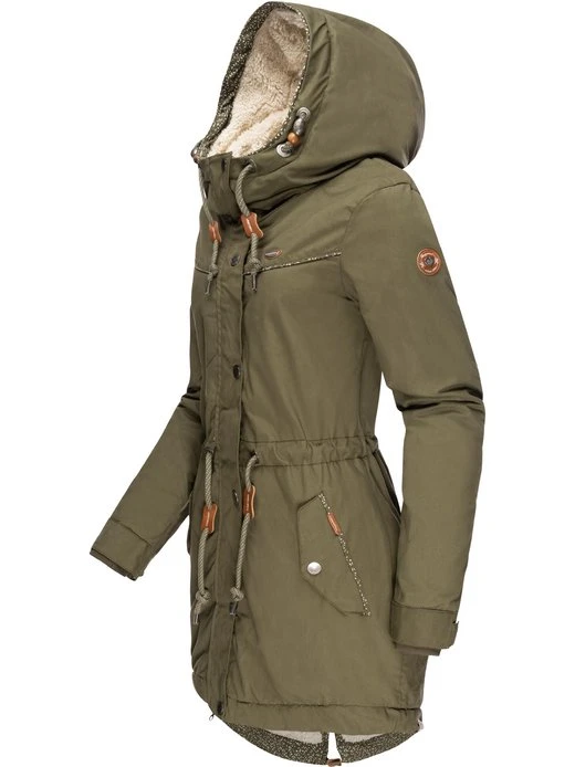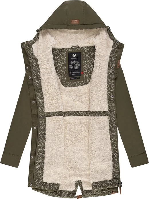Stylischer Winterparka mit Kapuze, weichem Innenfutter aus Teddy-Fleece und dicken Tunnelzugkordeln vom angesagten Streetwear Label Ragwear.