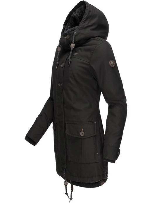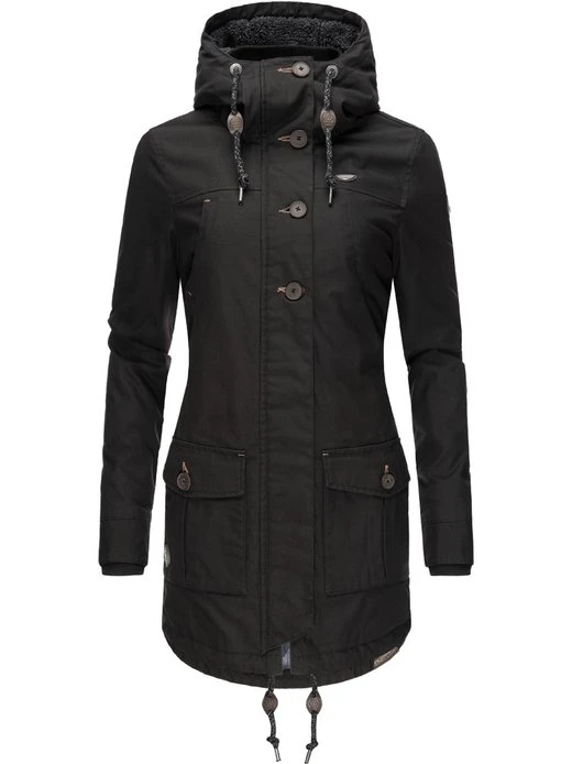 Sportliche Allround Winterjacke mit Kapuze und innen mit kuscheligem Teddyfell gefüttert, vom angesagten Trendlabel Ragwear (100% vegan).