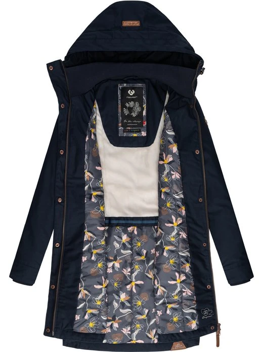 Sportlicher Wintermantel mit Kapuze und innen (zur Hälfte) mit kuscheligem Teddyfell gefüttert vom angesagten Streetware-Label Ragwear (100% vegan).