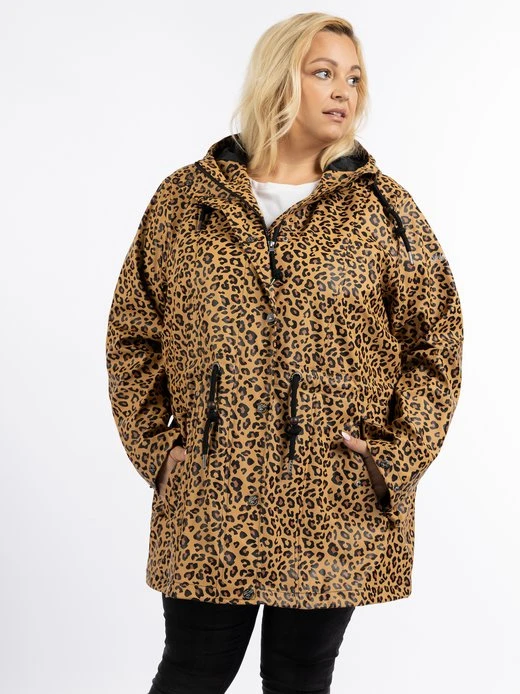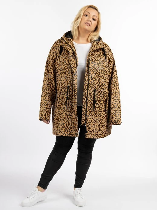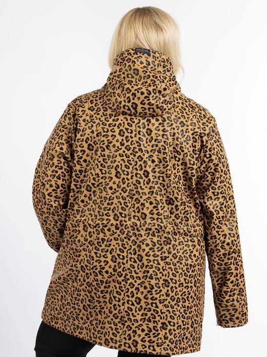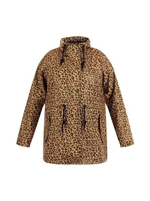 An nassen und grauen Regentagen sorgt der Regenmantel von Schmuddelwedda für gute Laune. Besonders der trendige beige-schwarze Leo-Print setzt dabei die optischen Akzente. Auf Funktionalität wird dennoch nicht verzichtet: Das beschichtete Material ist wind- und wasserdicht und dank versiegelter Nähte kommt auch hier keine Nässe durch. Der durchgehende 2-Wege-Reißverschluss mit Kinnschutz wird durch eine Druckknopfleiste verdeckt und bietet ebenso Schutz wie die Kapuze mit Tunnelzug und Kordel. Zwei seitliche Pattentaschen und eine Taillenkordel vervollständigen das gelungene Design.