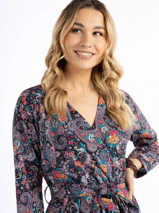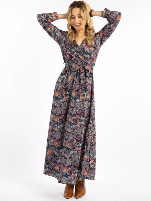 Mit dem Paisley-Maxidress von usha FESTIVAL lassen Sie den Ethno-Look neu aufleben. Neben dem auffälligen Dessin besticht das in Italien gefertigte Modell durch einen femininen V-Ausschnitt und einen seidigen Touch. Ein elastischer Gummizug sowie ein materialgleicher Gürtel betonen Taille. Der lange Rock hat einen fließenden Fall und verleiht dem Kleid einen trendigen Boho-Touch. Insgesamt trägt sich das weiche und unkomplizierte Material luftig-leicht und bringt sie stilsicher durch alle Saisons.