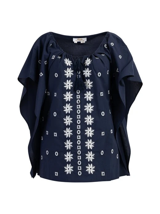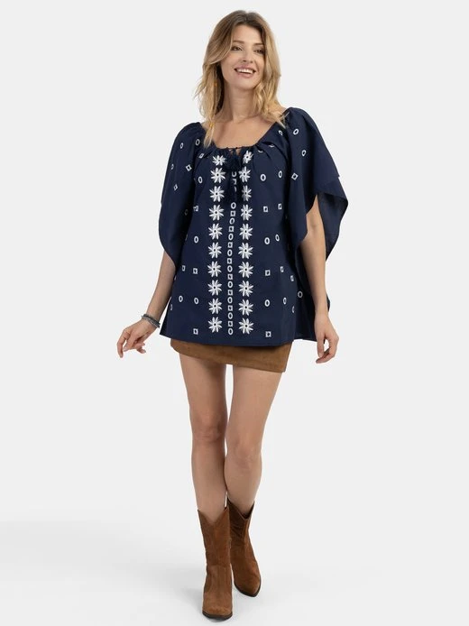 Dieser Baumwoll-Poncho von usha FESTIVAL ist ein absolutes Boho-Essential für Ihre Urlaubs- oder Festivalgarderobe. Das locker geschnittene Modell mit weit schwingenden Fledermausärmeln ist gerade geschnitten und ist mit einer aufwendigen Stickerei veredelt. Das luftige Design mit weitem Rundhals und Bindeband plus Quaste liefert Summer-Vibes inklusive.