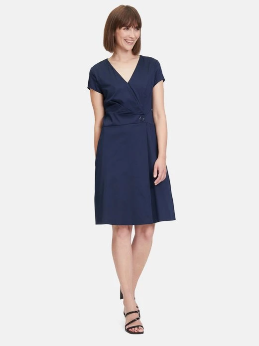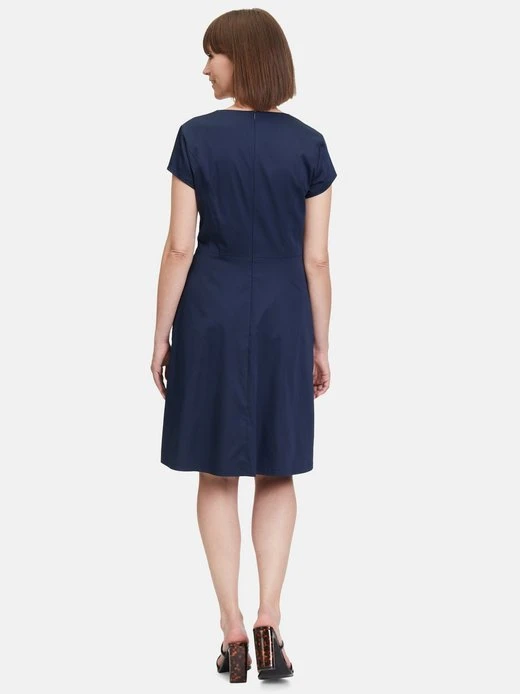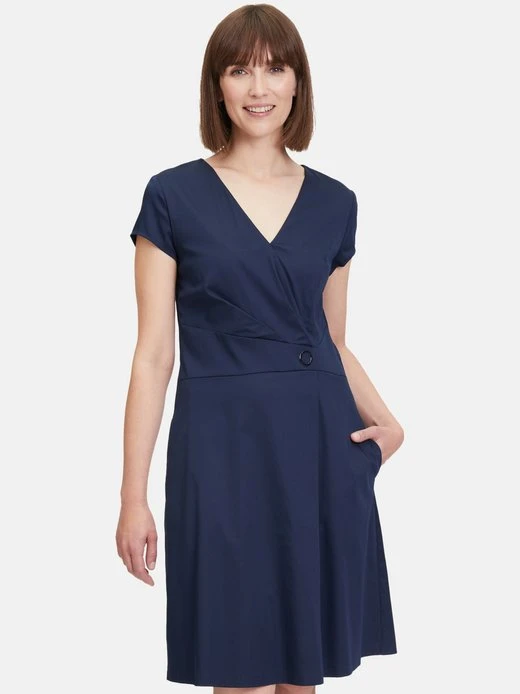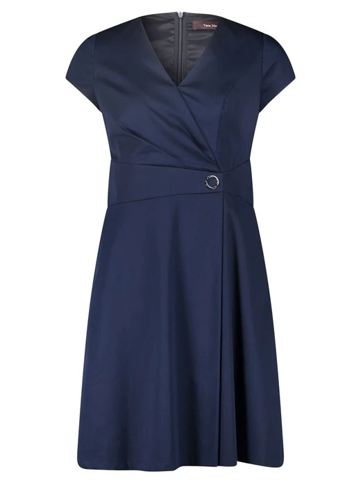 Zeitlos schön: Ein Modeklassiker, der in Ihrem Kleiderschrank nicht fehlen sollte. Das Basic-Kleid von Vera Mont ist ein feminines Kleidungsstück mit halblangen Ärmeln und einem eleganten V-Ausschnitt. Das florale Muster verleiht dem Kleid eine verspielte und feminine Note. Das Kleid hat Nahttaschen und einen praktischen Reißverschluss. Der ausgestellte Rock endet knieumspielend und sorgt für eine schöne Silhouette. Ein perfektes Outfit für verschiedene Anlässe wie Büro oder Freizeitaktivitäten.